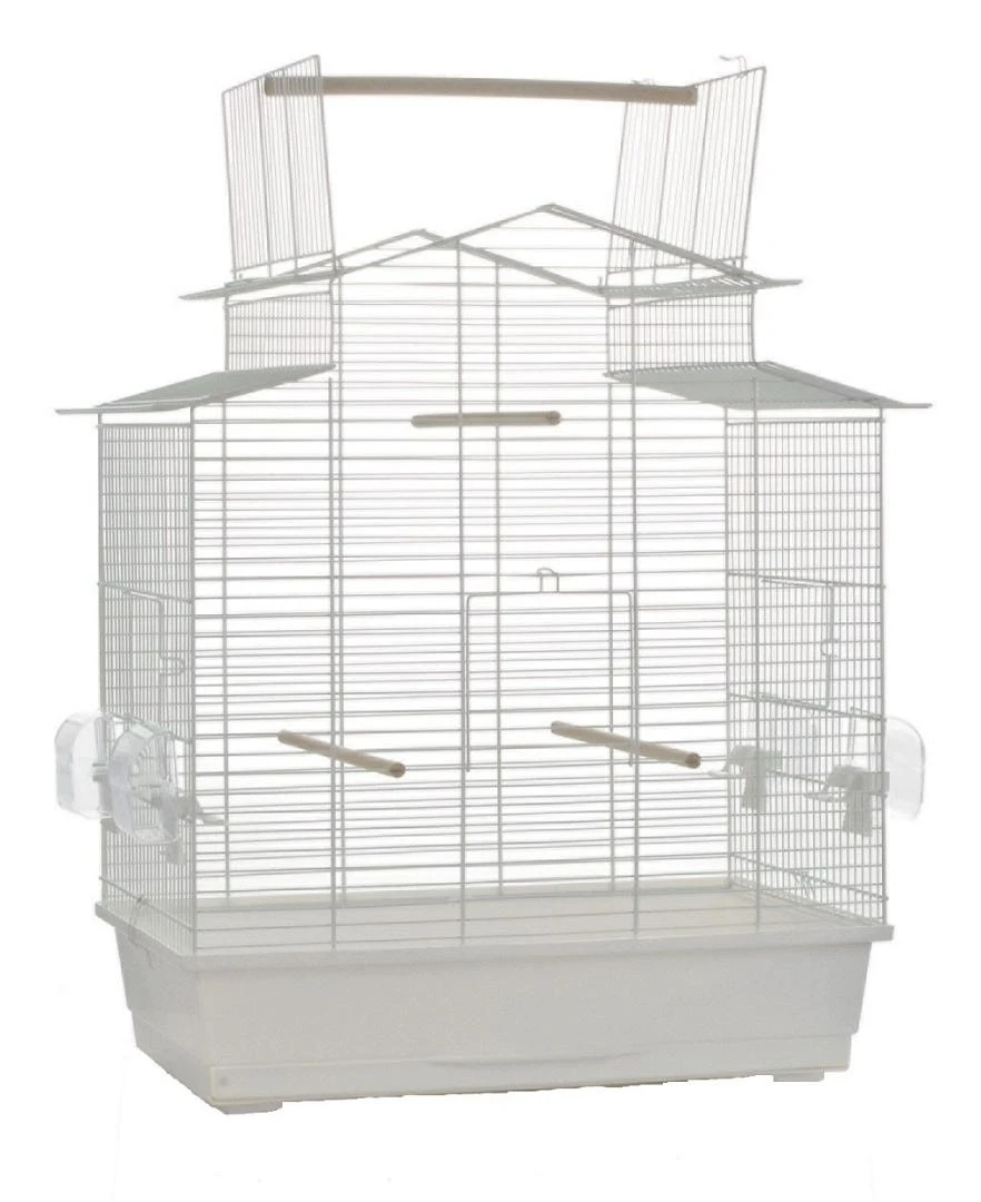 De kooi is gemakkelijk schoon te maken door de lade. Het dak kan eventueel worden opengezet om zo een vrije zitplaats voor uw vogel te creeren. Inclusief zitstokjes en drink en voederbakjes.