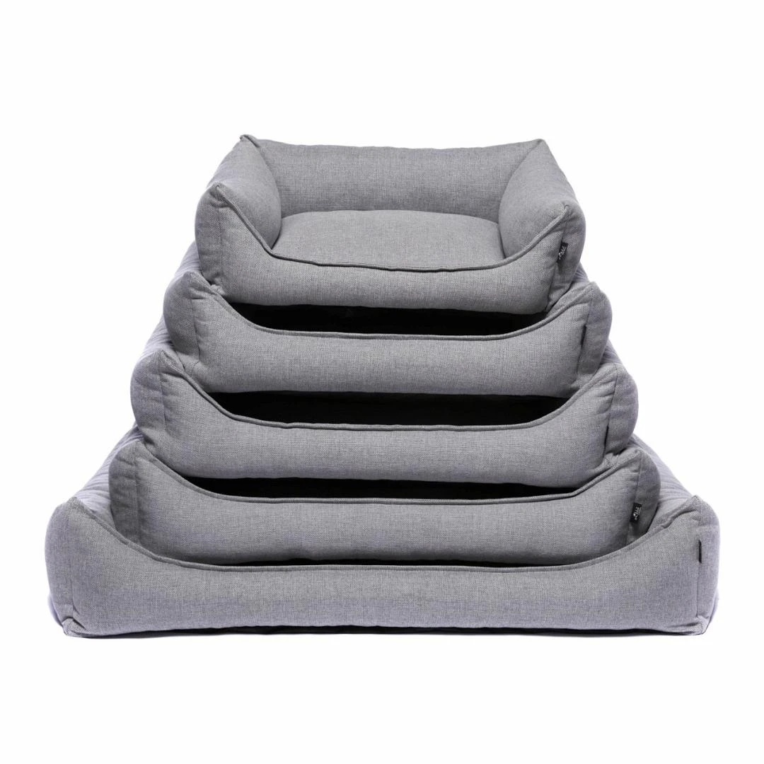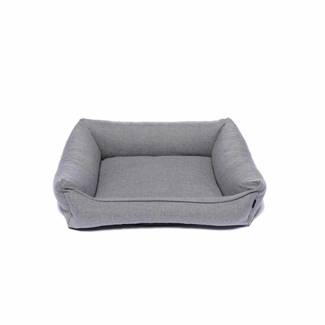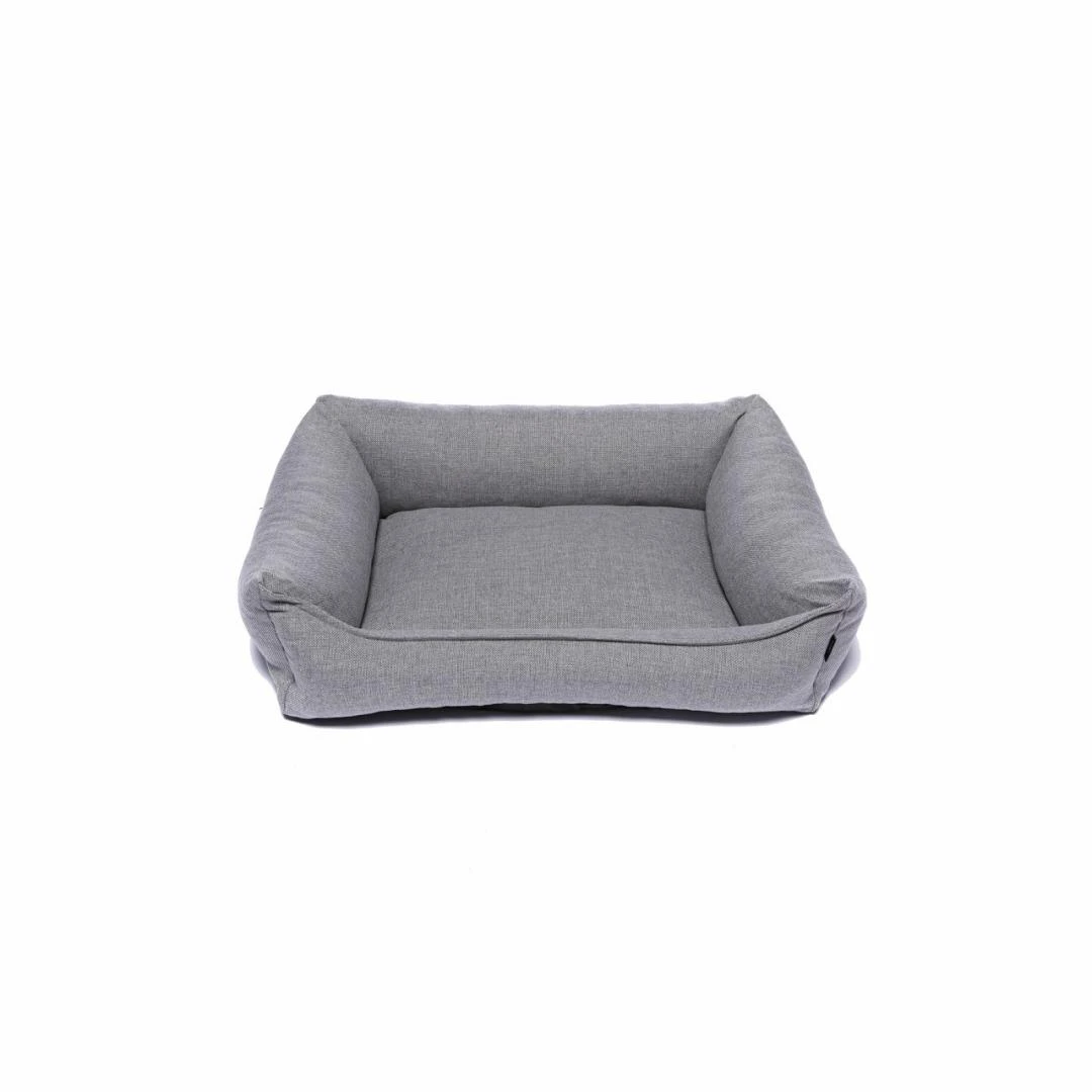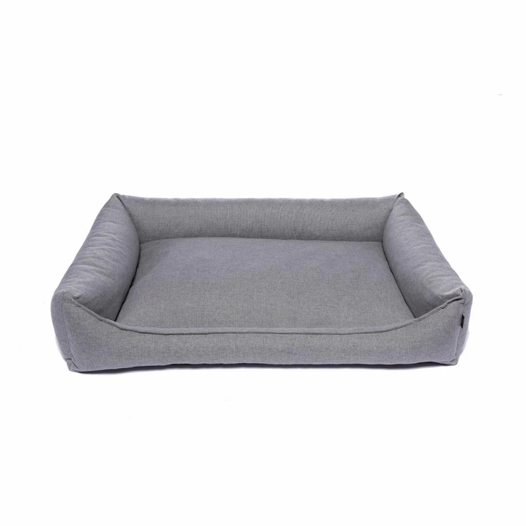 Het slijtvaste materiaal heeft een gemêleerde kleur en geeft de hondenmand een speelse doch chique touch. Door de stevige vulling van gemalen koudschuim kan de hond lekker met zijn of haar kop op de rand liggen.